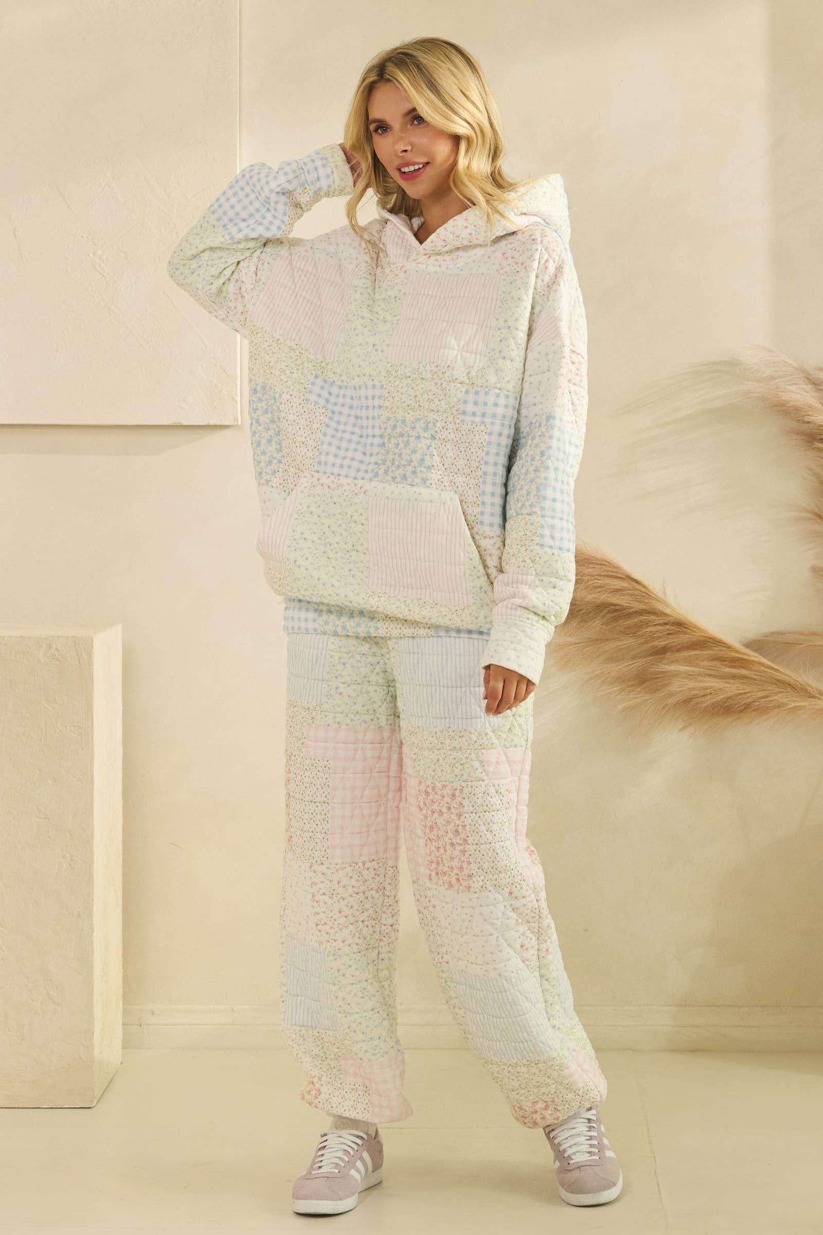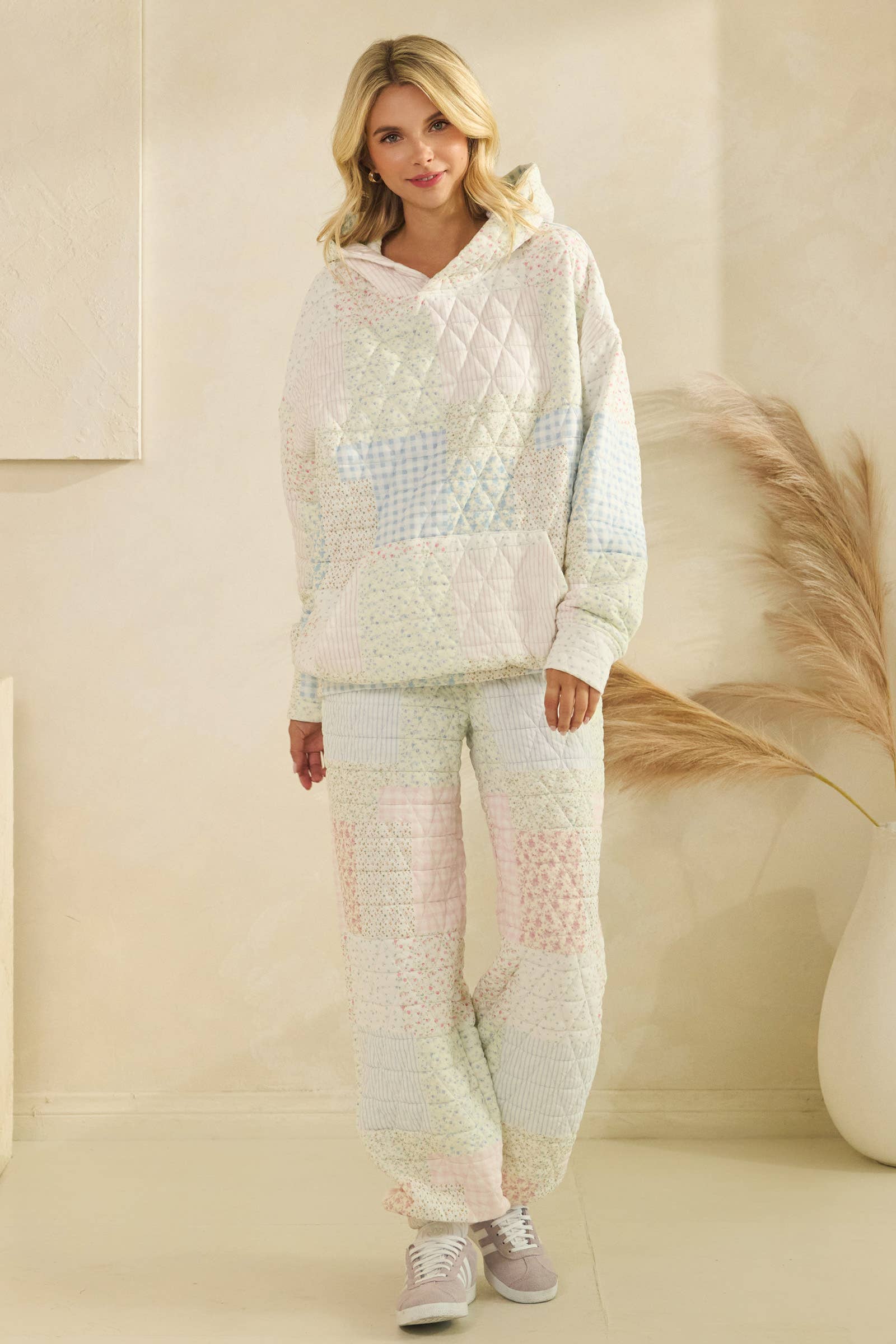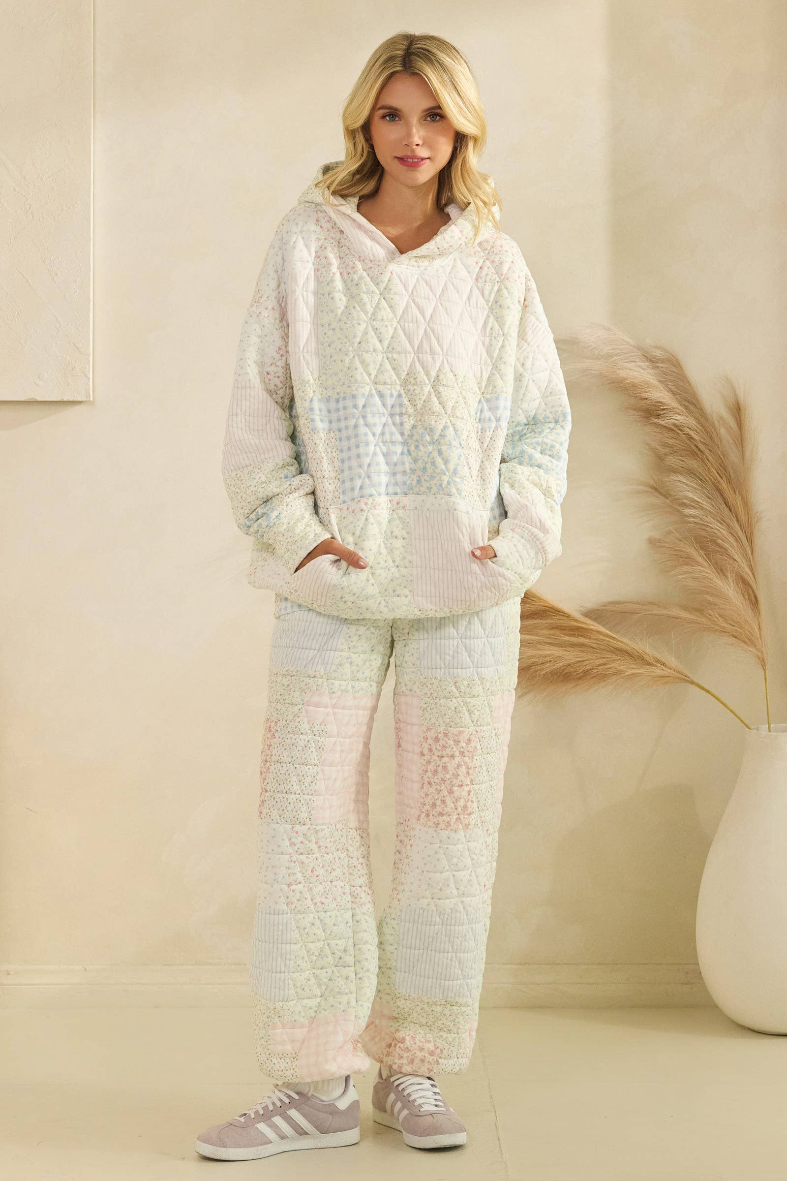 Floral Textured lounge pants Pairs with VT72517 or VT72518 Model is 5'9 and wearing a size small. Made in China