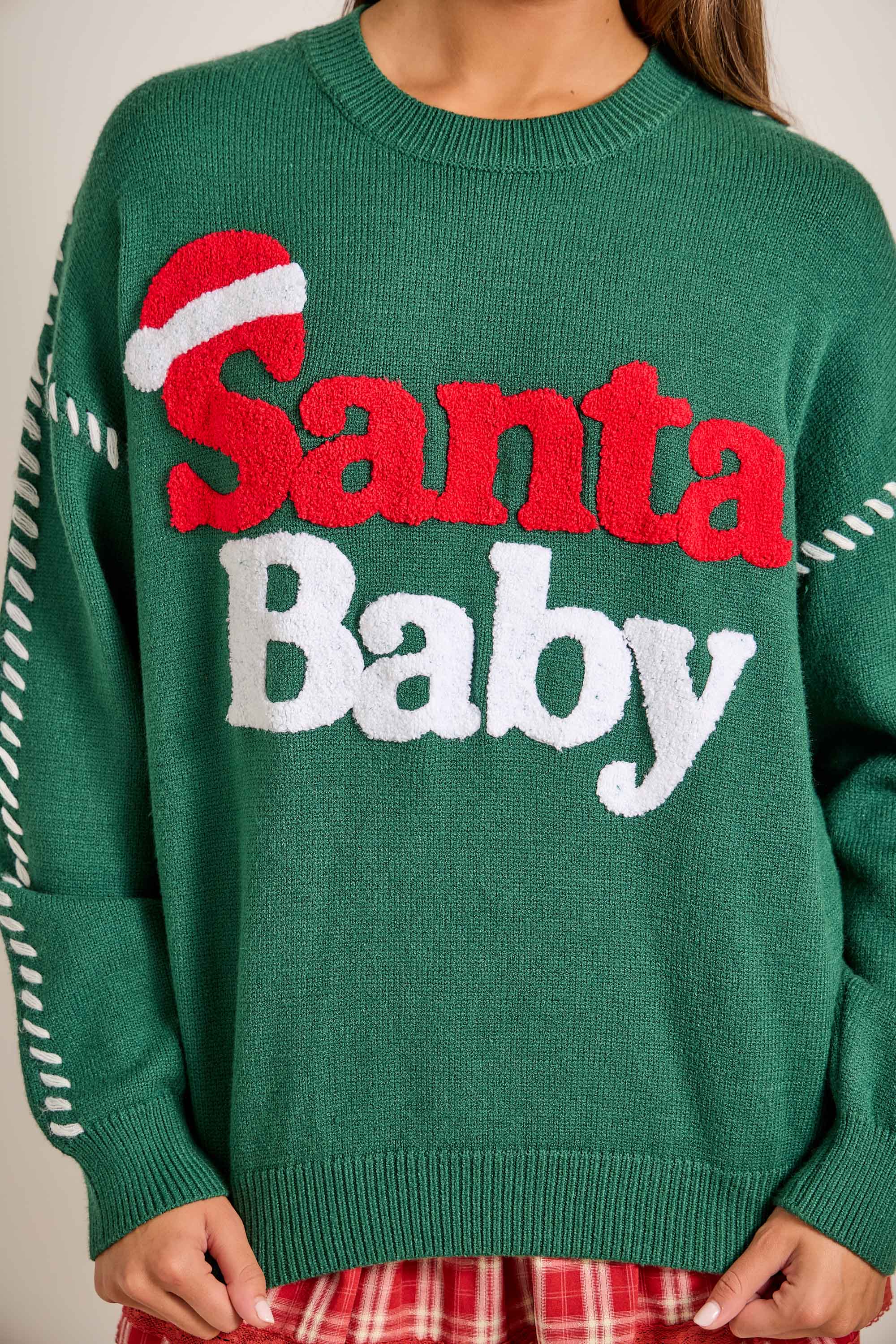 Santa Baby Green Christmas Knit Sweater – Festive Holiday